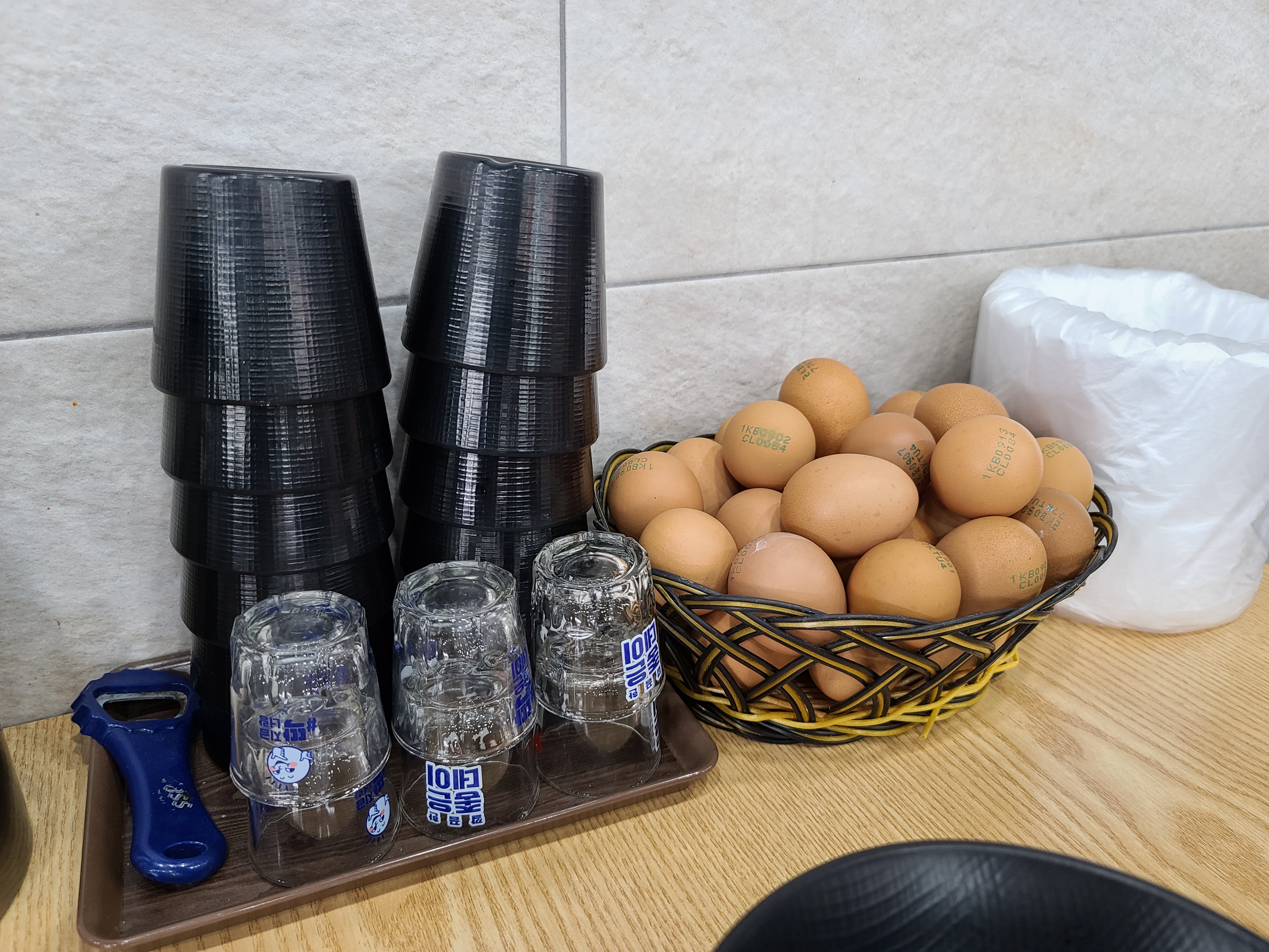 테이블마다 날계란이 있기 때문에 하나씩 넣어서 같이 드시면 상당히 맛있습니다. 가끔 보면 두 개씩 넣는 분들도 계시더라고요 ㅋㅋ 그래서 저는 두세 번 가면 한번 정도만 넣습니다. ㅋㅋ