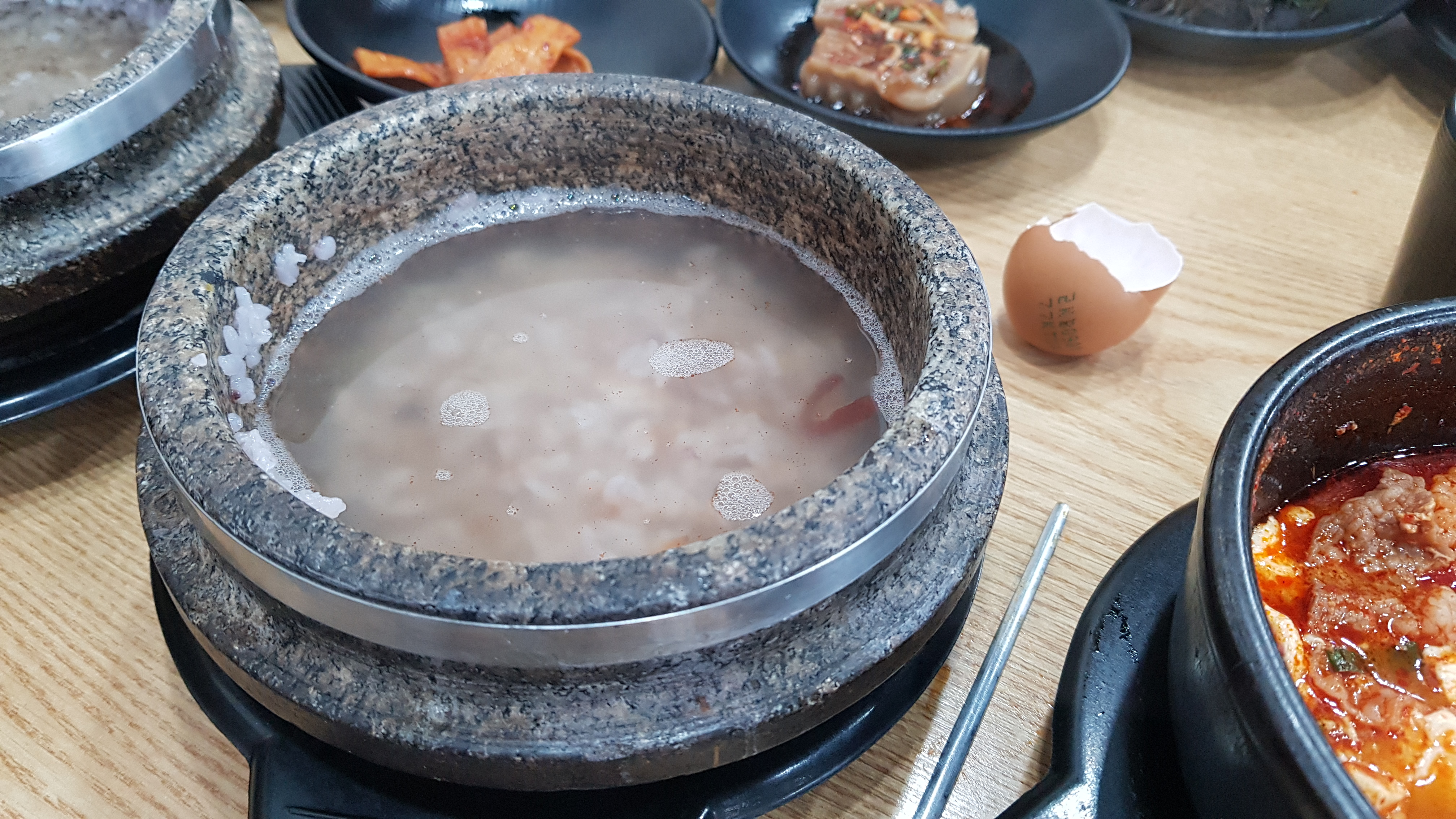 뚜껑을 열면 안에 잡곡도 들어 있고, 아주 열기가 가득 ...으흠~ 너무 좋았네요. 아주 빡빡 긁어서 먹었네요. 물도 붓고, 구수한 숭늉까지 즐길 수 있는 거제 상동 맛집 일품 순두부 저는 개인적으로 점심메뉴 완전 강추 물론 저녁도 괜찮고요.